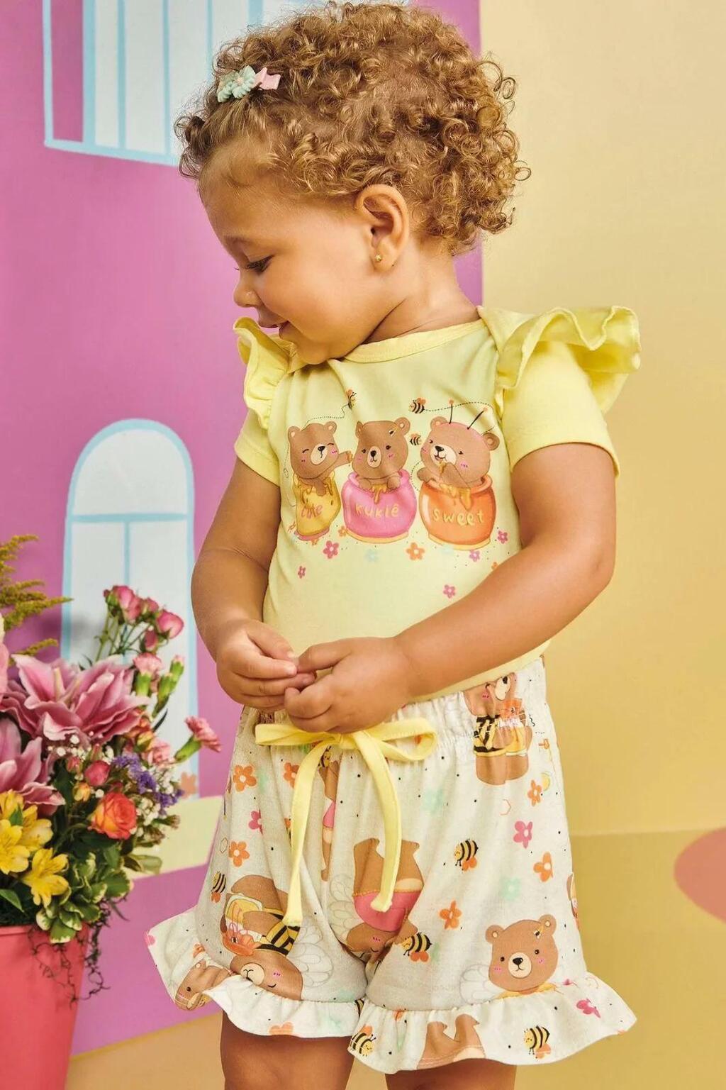 Conjunto Body Amarelo e Short Ursinhos – Kukiê